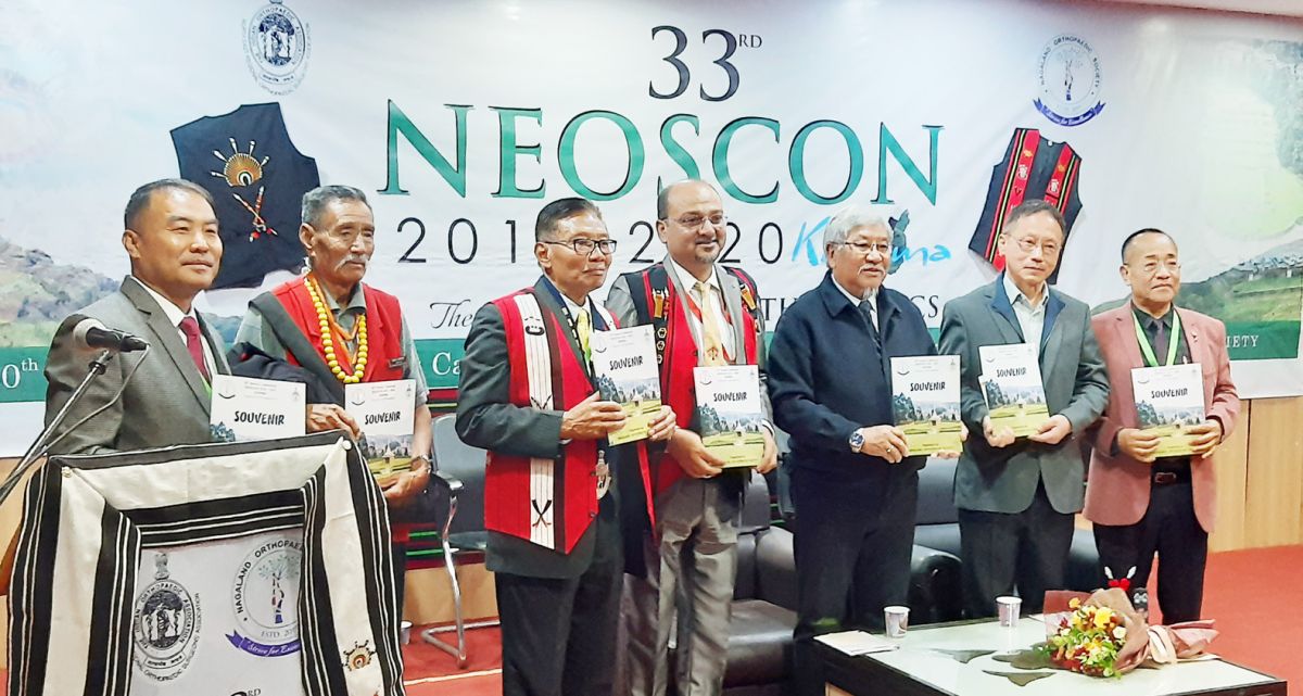 Dr Neikiesalie (Nicky) Kire and others during the release souvenir of NEOSCON 2019-20 conference in Kohima on November 30. (Morung Photo)