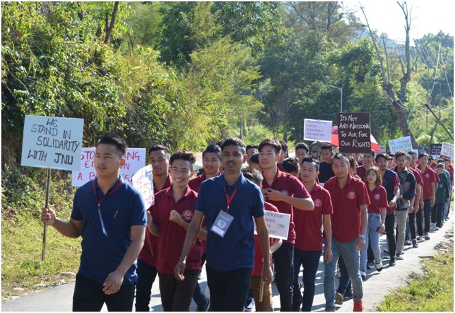 Nagaland University, Lumami students took out a rally in solidarity with the JNU’s demand for affordable and accessible education on November 27. (Photo credit: NUSU-L).