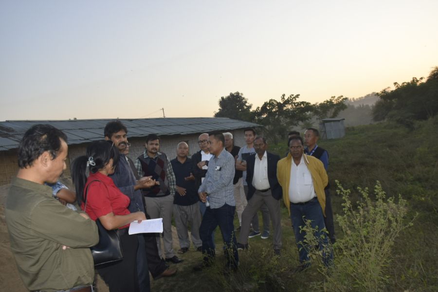 The inter-ministerial team sent by the Government of India along with officials from district administration, Dimapur and others inspecting a disaster affected site in Dimapur on November 27. (DPIR Photo)