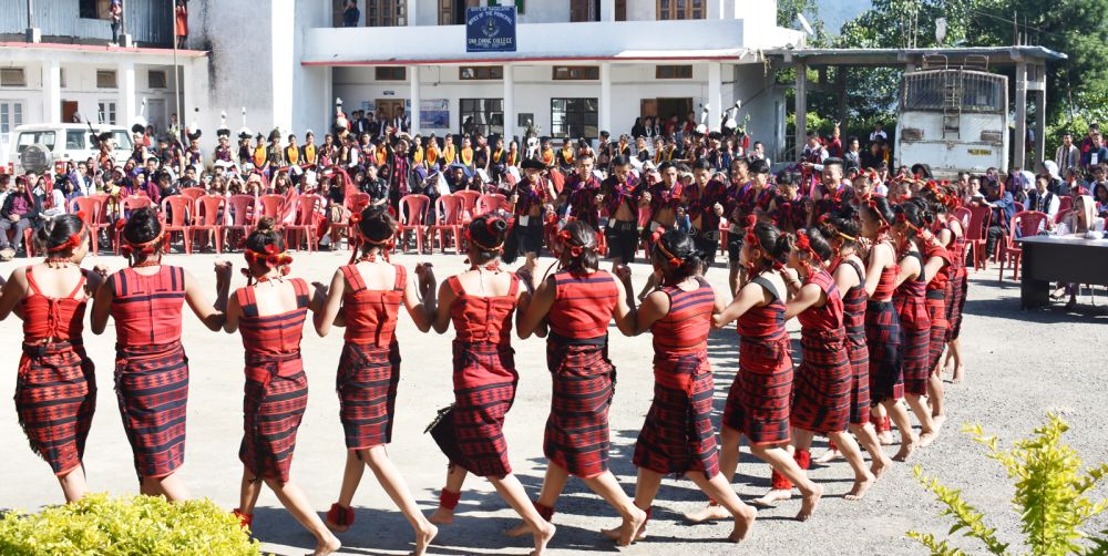 Students performing folk dance during the 45th annual cultural day of Sao Chang College, Tuensang held on November 22. (Photo Courtesy: Sao Chang College)