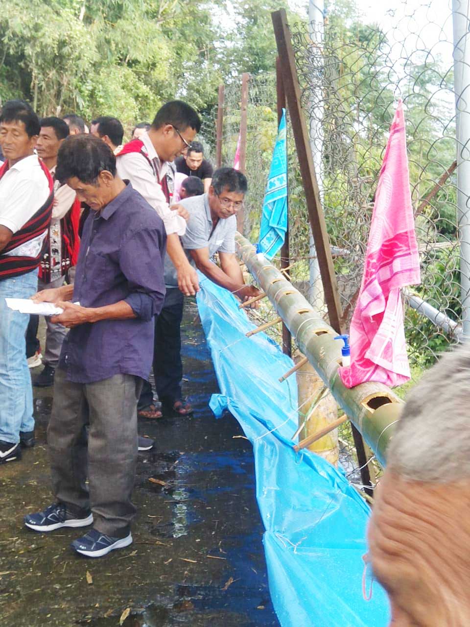 People are seen washing their hands from a tap made out of bamboo after an event in Changtongya village on November 12. The indigenous method used the whole bamboo as a multipurpose tap, with the bamboo stick p