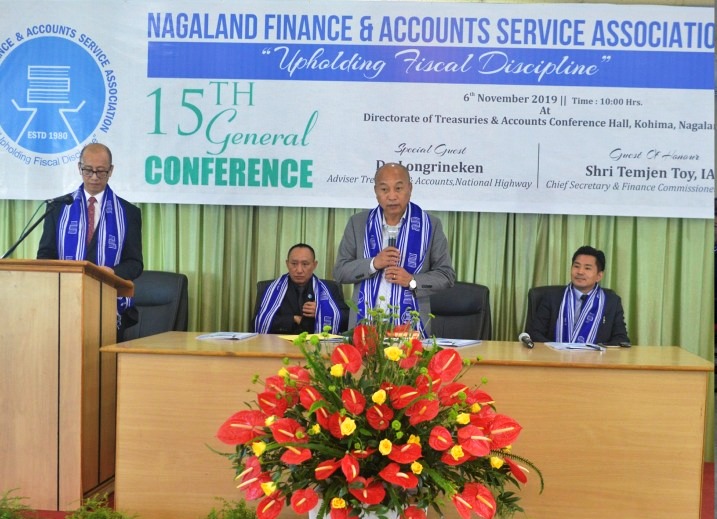 Advisor, Treasuries & Accounts, NH, Dr Longrineken addressing the 15th general conference of Nagaland Finance & Accounts Service Association held on November 6. (DIPR Photo)