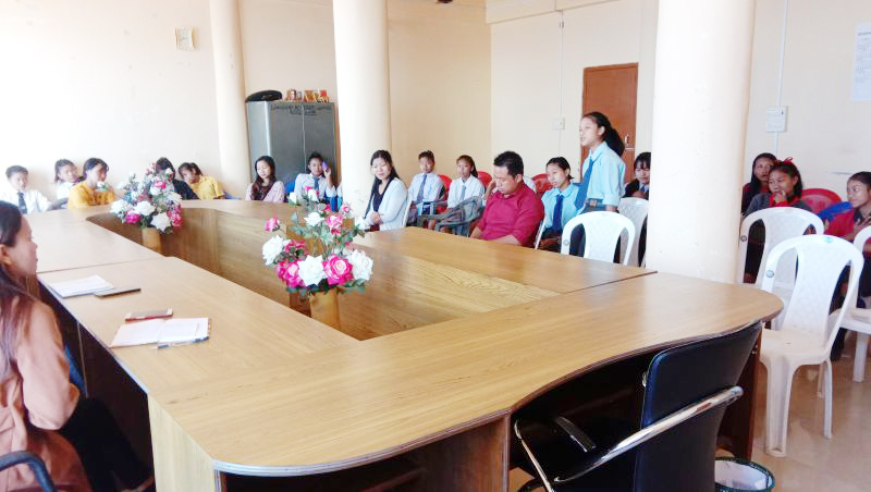 Students during the meeting for formation of Adolescent Girl's Club Longleng at DC's Conference Hall on November 1.