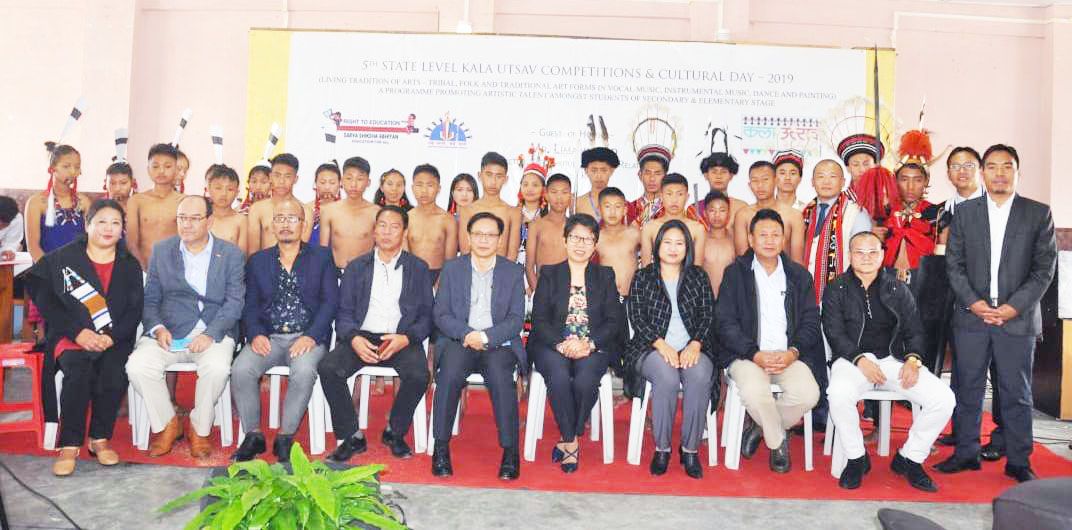 Limawati Ao and other dignitaries with cultural troupe during 5th state level Kala Utsav 2019 in Kohima. (Morung Photo)