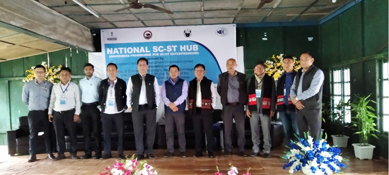Guests and officials during the National SC-ST hub awareness programme for SC-ST entrepreneurs held at Town Hall, Changtongya on October 25. (DIPR Photo)