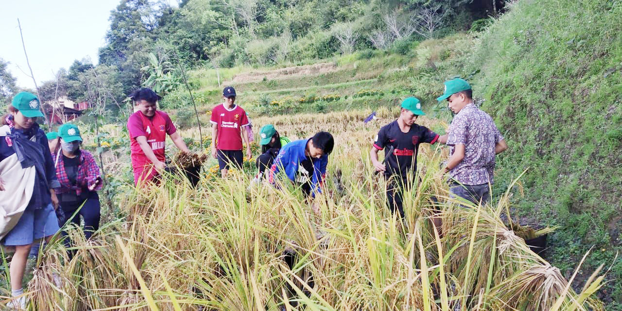 Students harvesting paddy during the 5th NEN Farm School which was held in Chizami from October 25 to 28.