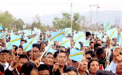 Dimapur, March 1 (MExN): A sea of waving blue flags dotted the Agri-Expo site at 4th Mile, Dimapur yesterday during the Naga Reconciliation meeting. Responding to the call of a public meeting by the Forum for N