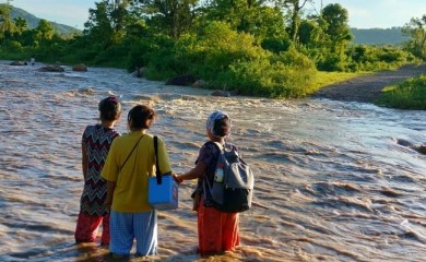 Health workers cross a river to administer Routine Immunization at Beisumpui village, Peren district. In this image tweeted by National Health Mission (NHM), Nagaland on June 25 last, it wrote ‘health wor