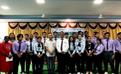 Chümoukedima, May 8 (MExN): Rev Dr Chingmak Chang, founder and Secretary, Eleotheros Christian Society (ECS) Tuensang delivered a motivational talk at St Joseph University (SJU), Chümoukedima on May 5