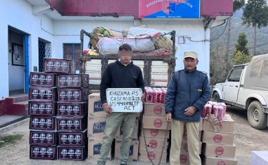 Kohima, January 14 (MExN): Kohima Police manning Khuzama inter-state police check gate while conducting routine checking of vehicles on January 11, intercepted one Tata Mobile bearing regd. No. NL-07A-8625 and