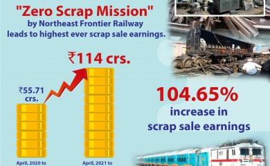 Guwahati, February 1 (MExN): The Northeast Frontier Railway (NFR) has sold scrap worth Rs. 114 crore January 31, 2022, the highest sale of scrap materials registered by the zone in last 10 years, an official re