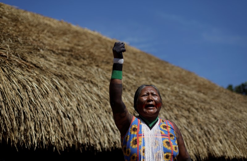 A kayapo woman shouts during a four-day pow wow in Piaracu village, in Xingu Indigenous Park, near Sao Jose do Xingu, Mato Grosso state, Brazil on January 15, 2020. (REUTERS File Photo)