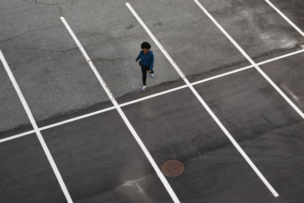 A woman walks through an empty mall parking lot days before the phased reopening of businesses and restaurants from coronavirus disease (COVID-19) restrictions in Atlanta, Georgia, US on April 22. (REUTERS