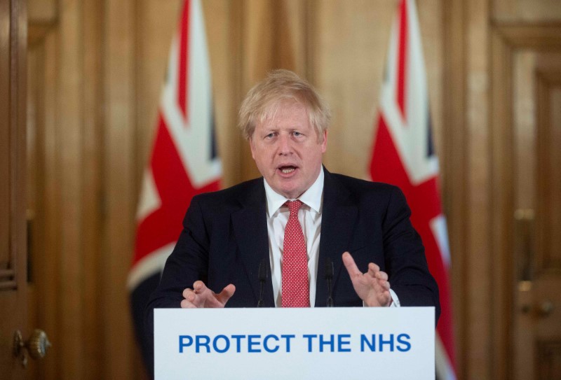 British Prime Minister Boris Johnson attends a news conference on the ongoing situation with the coronavirus disease (COVID-19) in London, Britain March 20, 2020. Julian Simmonds/Pool via REUTERS