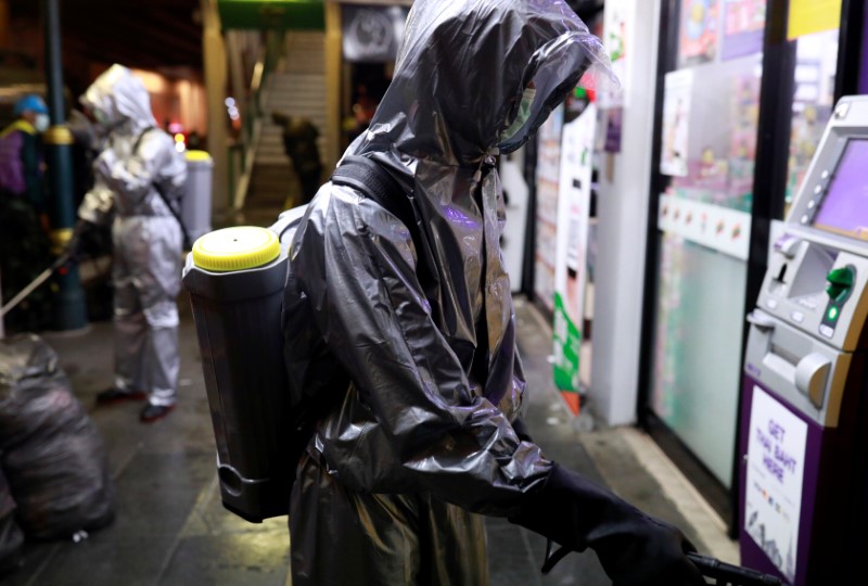 Royal Thai Army soldiers sanitize in the city due to the coronavirus disease (COVID-19) outbreak in Bangkok, Thailand on March 21. (REUTERS Photo)