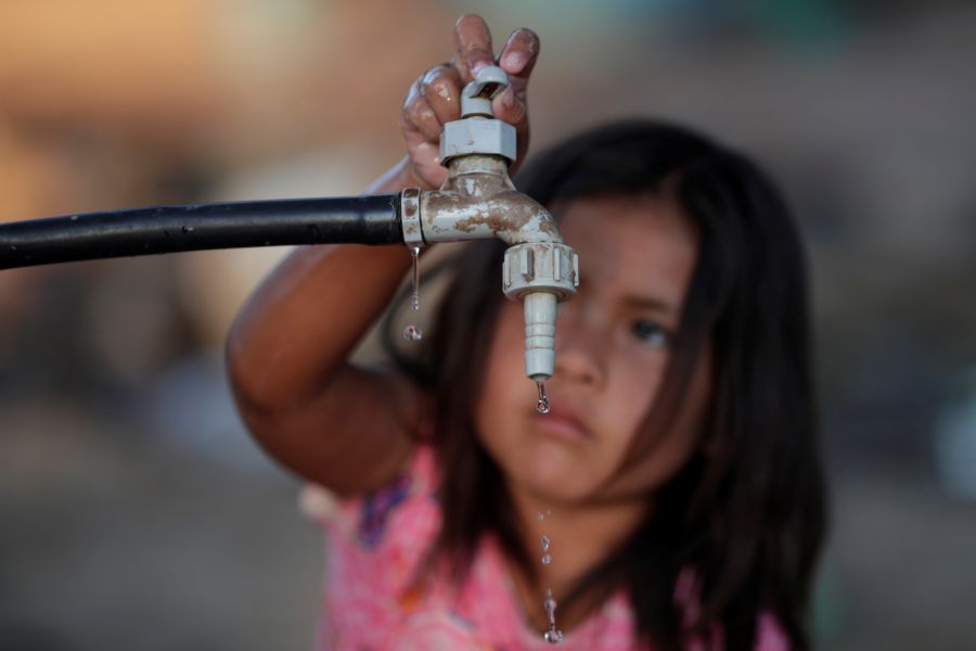 A child of the indigenous Wichi community opens a water tap, in the Salta province, Argentina on February 28, 2020. (REUTERS File Photo)