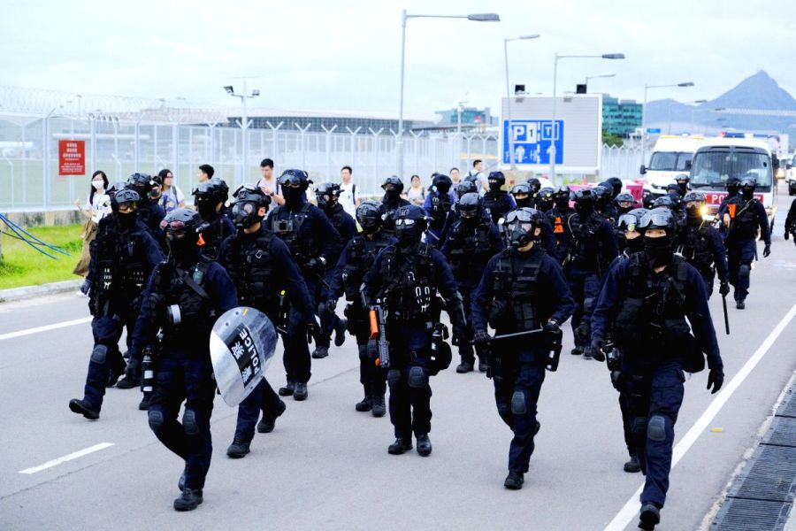 Hong Kong police conduct a dispersal operation at around 5 p.m. outside the Hong Kong International Airport in south China's Hong Kong on September 1, 2019. (IANS File Photo)