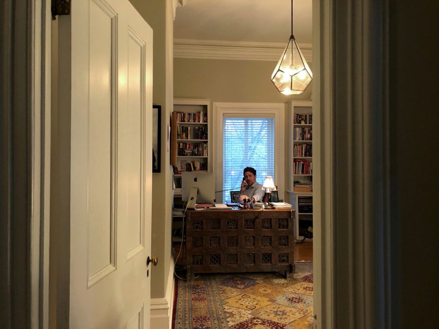 Canada’s Prime Minister Justin Trudeau works from his home office at Rideau Cottage, during his self-quarantine after his wife Sophie Gregoire tested positive for novel coronavirus (COVID-19), in a picture ta