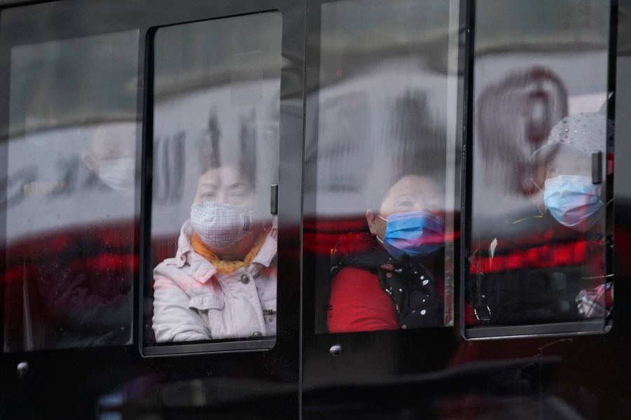 People wear protective face masks as they sit in a bus following an outbreak of coronavirus (COVID-19), in downtown Shanghai, China on March 16, 2020. (REUTERS Photo)