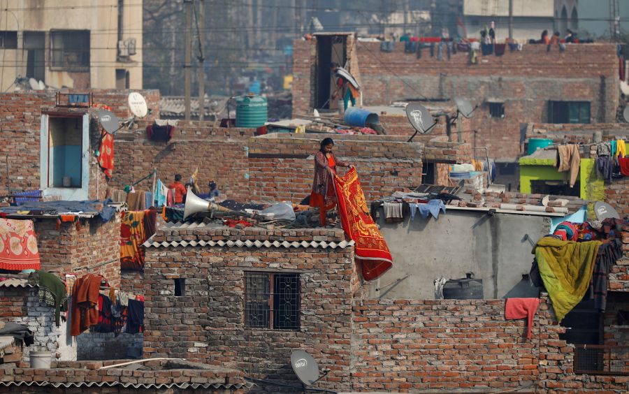 A woman hangs a blanket out to dry, at a slum in New Delhi on January 2, 2020. (REUTERS File Photo)