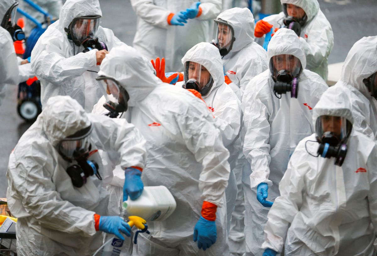 Members of a Servpro cleaning put on protective gear before entering the Life Care Center of Kirkland, a long-term care facility linked to several confirmed coronavirus cases, in Kirkland, Washington, U.S. Marc