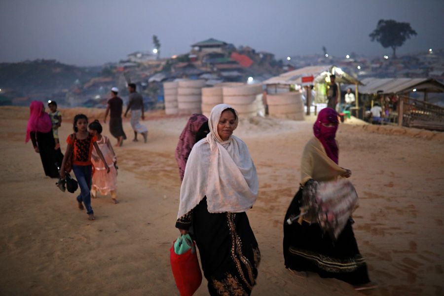 Rohingya refugees walk along the road in the evening at Balukhali camp in Cox’s Bazar, Bangladesh, November 16, 2018. REUTERS/Mohammad Ponir Hossain - RC1611CAC700