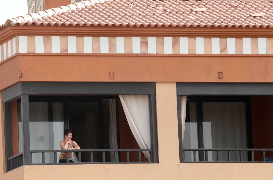 A woman looks from a terrace of H10 Hotel, which is on lockdown after novel coronavirus has been confirmed in Adeje, on the Spanish island of Tenerife, Spain on February 25, 2020. (REUTERS Photo)