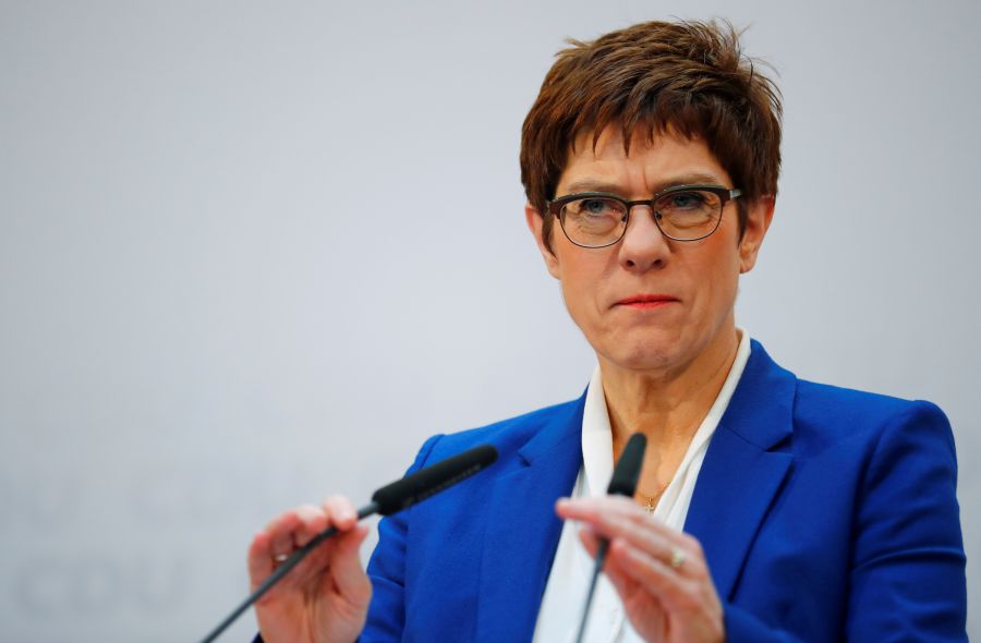 Annegret Kramp-Karrenbauer, outgoing leader of Germany's Christian Democratic Union (CDU), speaks during a news conference after a board meeting at the party’s headquarters in Berlin, Germany on February