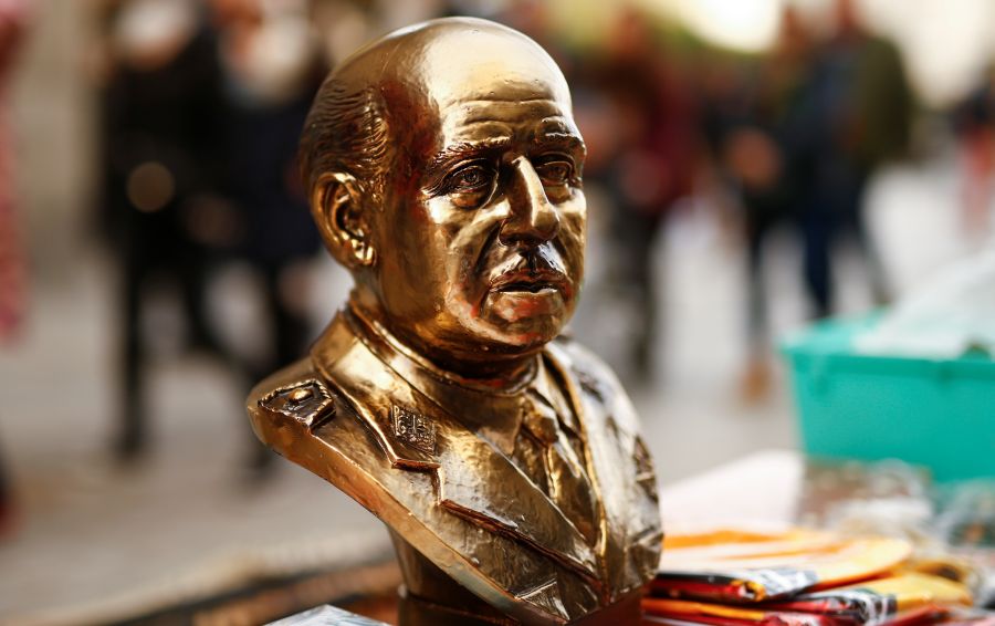A Franco bust is pictured at a demonstration of supporters of former Spanish dictator Francisco Franco against his exhumation during the annual gathering held on the week of the 44th anniversary of the dictator