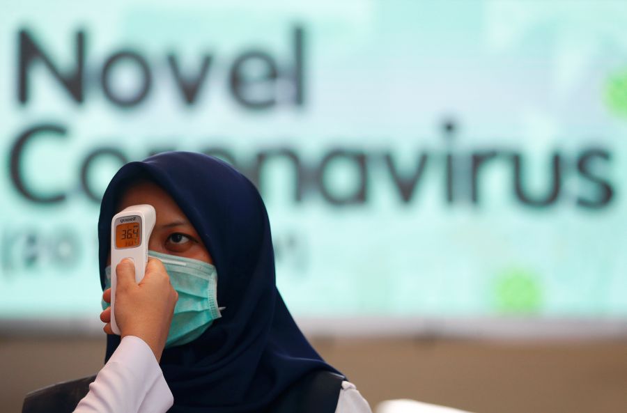 Officer checks the temperature of a passenger with a thermal scanner upon arrival at Sudirman Station, in Jakarta, Indonesia on February 4, 2020. (REUTERS Photo)