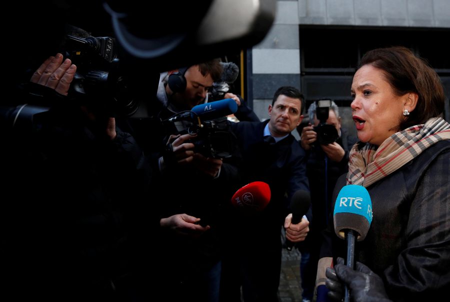 Sinn Fein leader Mary Lou McDonald talks to the media as she meets with members of the public in Dublin, Ireland on February 10, 2020. (REUTERS Photo)