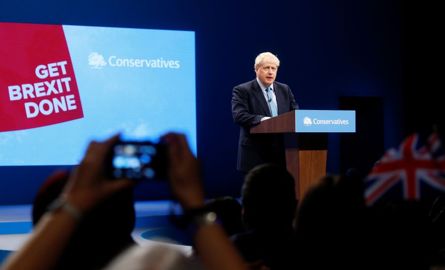 British Prime Minister Boris Johnson gestures as he gives a closing speech at the Conservative Party annual conference in Manchester, Britain on October 2. (REUTERS Photo)