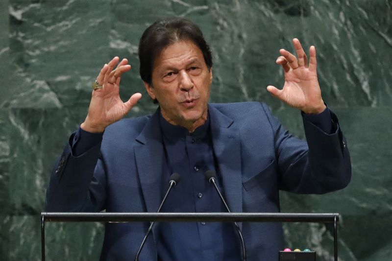 Imran Khan, Prime Minister of Pakistan addresses the 74th session of the United Nations General Assembly at U.N. headquarters in New York, US on September 27. (REUTERS Photo)