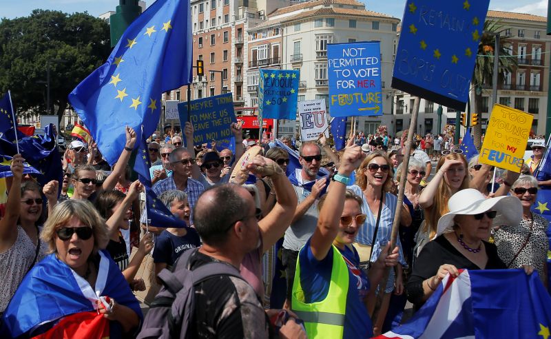 British residents in Spain march during an anti-Brexit demonstration, in Malaga, Spain on September 22. (REUTERS Photo)