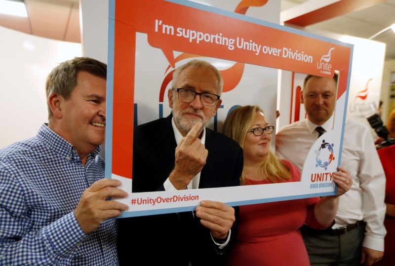 Britain's Labour party leader Jeremy Corbyn visits stalls during the Labour Party annual conference in Brighton, Britain on September 22. (REUTERS Photo)
