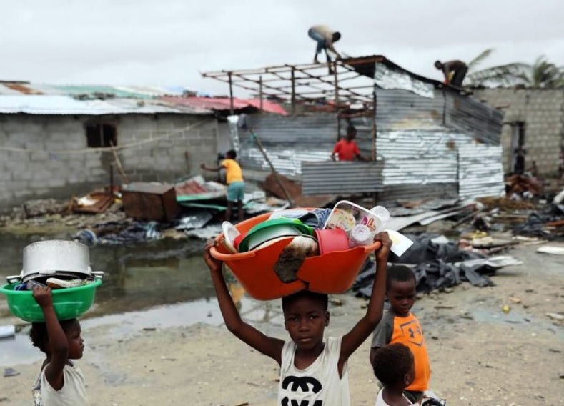 Children carry pots and plates as people repair damaged buildings in the aftermath of Cyclone Idai, in Beira, Mozambique on March 23, 2019. (REUTERS File Photo)
