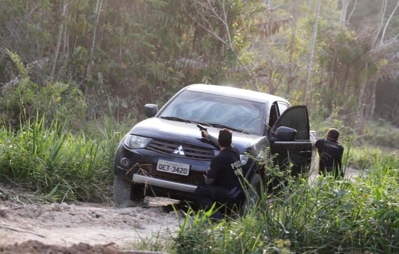 Federal Police officers shoot suspected loggers during an operation conducted jointly with the Brazilian Institute for the Environment and Renewable Natural Resources (IBAMA) at an illegal gold mine near the ci