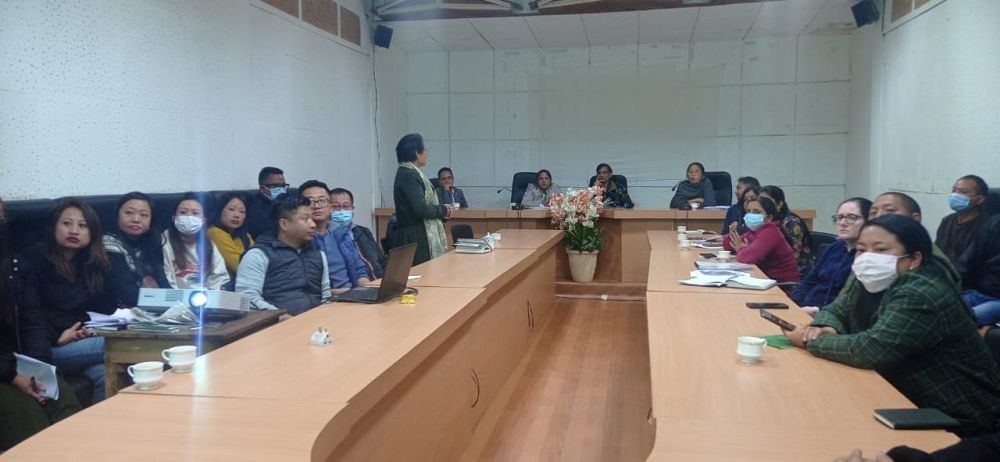 The team held a meeting at the Conference hall, Metsuben Hotel with the Chief Medical Officer, Medical Superintendent, District Programme Officers and staff from the Department of Health & Family Welfare Mokokchung. During the meeting, the visiting team interacted with the attendees on the activities of the different programmes under the department.