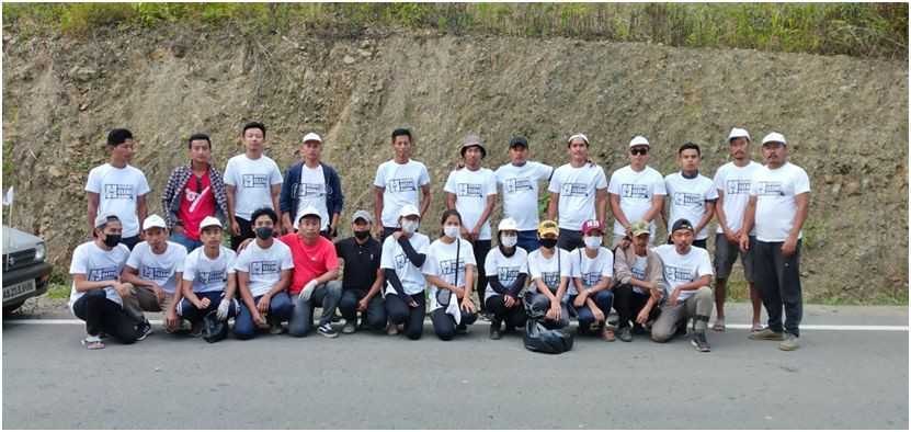 Some of the volunteers for the two-day cleanliness drive along NH-2 under Tseminyu subdivision. (Photo Courtesy: RSU)