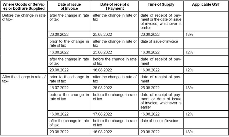 Therefore, it has been clarified that when there is a change in the rate of tax, the correct application of the tax rate shall be determined on the basis of time of supply as prescribed under section 14 of the NGST Act, 2017, it added.