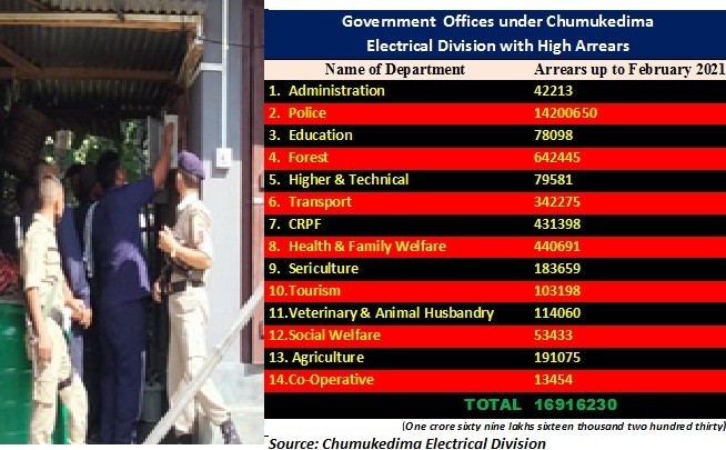 Government offices will also be liable to disconnected if payment is not done before March 31, informed a press release from Er Atoho Achumi, Executive Engineer, Chumukedima Electrical Division.