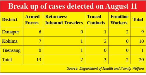 20 new COVID-19 positive cases were reported in Nagaland on August 11, taking the state’s tally to 3031.