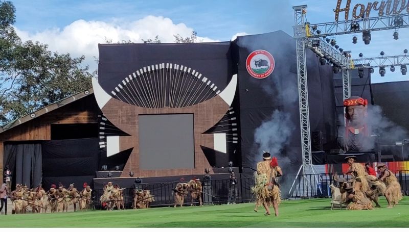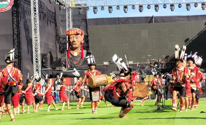 Konyak cultural troupe performs at Hornbill Festival 2021 in Kisama on December 3. (Morung Photo)