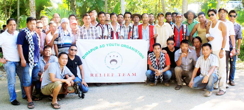 Members of Dimapur Ao Youth Organisation relief team with others during the tour to Mokokchung district.