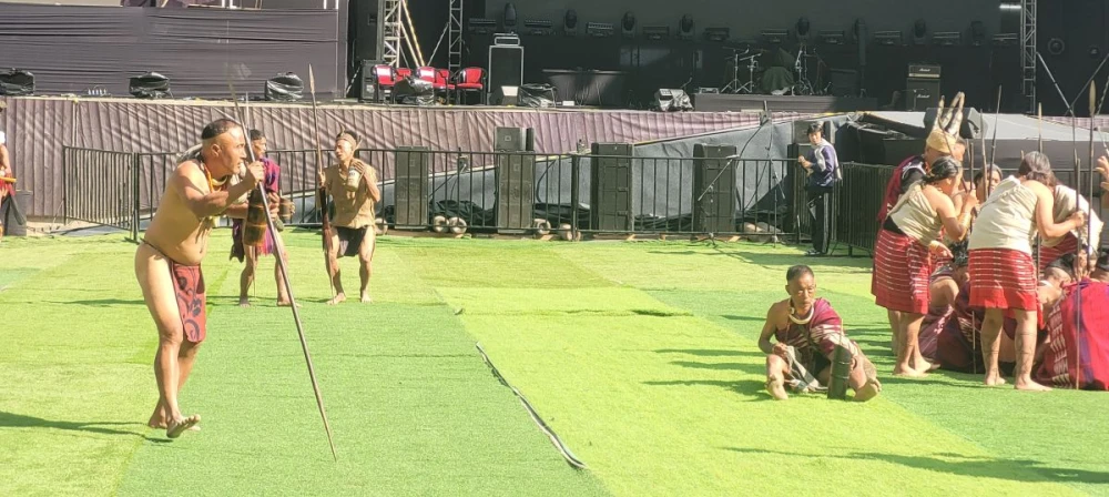 Khiamniungan Cultural Troupe from Noklak Town performed Beoyam Kinya, a harvest demonstration reflecting the joy, relief and communal unity during harvest season.