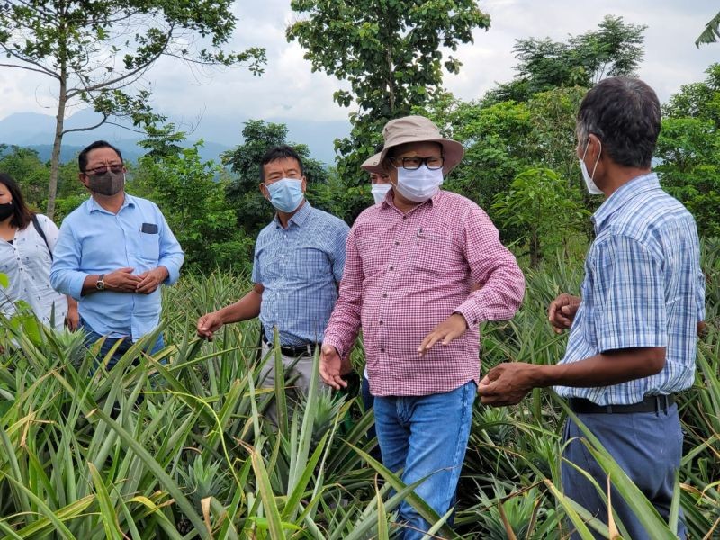 Inspecting a pineapple farm at Molvom village under Medziphema sub-division, the APC expressed satisfaction that the fruit was sustaining despite less rainfall and encouraged the farmers to further expand their area of cultivation and assured of all possible support and assistance from the Agri and allied departments.