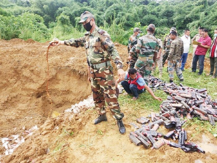 Mokokchung Battalion of Assam Rifles under the aegis of HQ IGAR (N) alongwith Police representative destroyed a total quantity of 165 cases of IMFL at Tuli Town under Mokokchung district on September 10. The consignment was destroyed in the presence of the destruction Committee head from SDO Tuli Sub Div, SDPO Tuli, OC PS Tuli, representatives from Watsü Telen (Women Association), Student Union, Ward Union Chairman and Town Council Chairman Tuli. (Photo Courtesy: HQ IGAR - N)