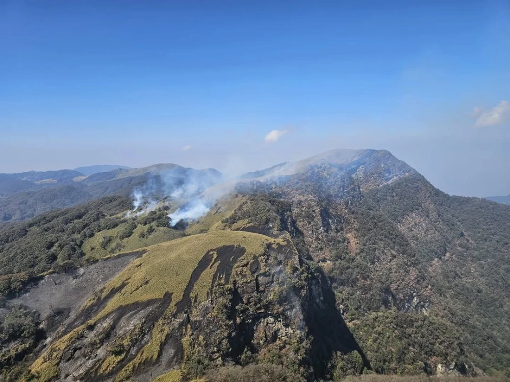 A team led by Deputy Commissioner of Kohima, B Henok Buchem, conducted an aerial survey to assess the extent of the damage and the current status of the fire on February 11.