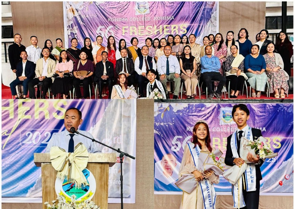The celebration at the College Courtyard welcomed the new undergraduate batch with the college anthem, invocation, and a range of cultural performances, including a duet by Bowe Elah and Wetshelhi Chirah. The programme also featured the induction of the Kohima College Students’ Council (KCSC) for 2025-26 and the much-anticipated Mr. & Miss Fresher contest, won by Political Science student Mhalezolie and English student Nyahpo Pinyeih.