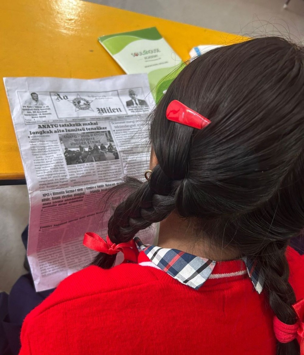 A student of Soul House Academy, Mokokchung reads Ao Milen, an Ao vernacular newspaper.